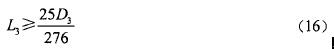 顯然,焊縫W-III即本體和玻封組件焊接部與焊縫W-II的結構型式完全相似,所以計算方法完全相同。設焊縫W-III的熔深L3,焊接部外徑為D3,同理可得L3與D3的數學關系式為: