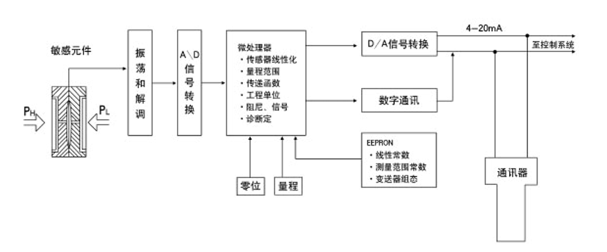 差壓變送器在控制系統(tǒng)中是工業(yè)生產(chǎn)中常用的自動化控制系統(tǒng)的重要組成單元,在智能化生產(chǎn)中有著廣泛的應(yīng)用,如果差壓變送器在控制系統(tǒng)發(fā)生故障,會導(dǎo)致測量準確度低、對生產(chǎn)工藝和質(zhì)量也會造成影響,因此差壓變送器在控制系統(tǒng)的故障分析與處理尤為重要。差壓變送器控制系統(tǒng)的故障根據(jù)發(fā)生的部分一般可分為變送器故障、控制系統(tǒng)故障以及閥門故障等,但是最常見的還是差壓變送器的故障。差壓變送器測量的準確性影響整個控制系統(tǒng)的性能,一旦差壓變送器發(fā)生故障會影響安全生產(chǎn),威脅人身安全。目前我們生產(chǎn)應(yīng)用到電容式差壓變送器的很多,其特點是結(jié)構(gòu)簡單,智能按鍵與手操器調(diào)整方便,精度高、易于維護。電容式差壓變送器通過將檢測的壓差信號轉(zhuǎn)換為電流信號。